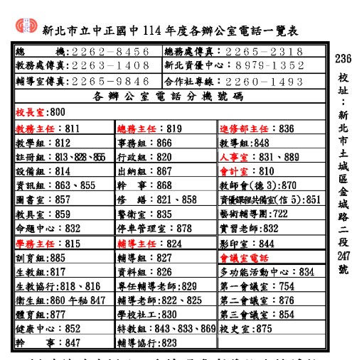 教室分配圖暨分機表